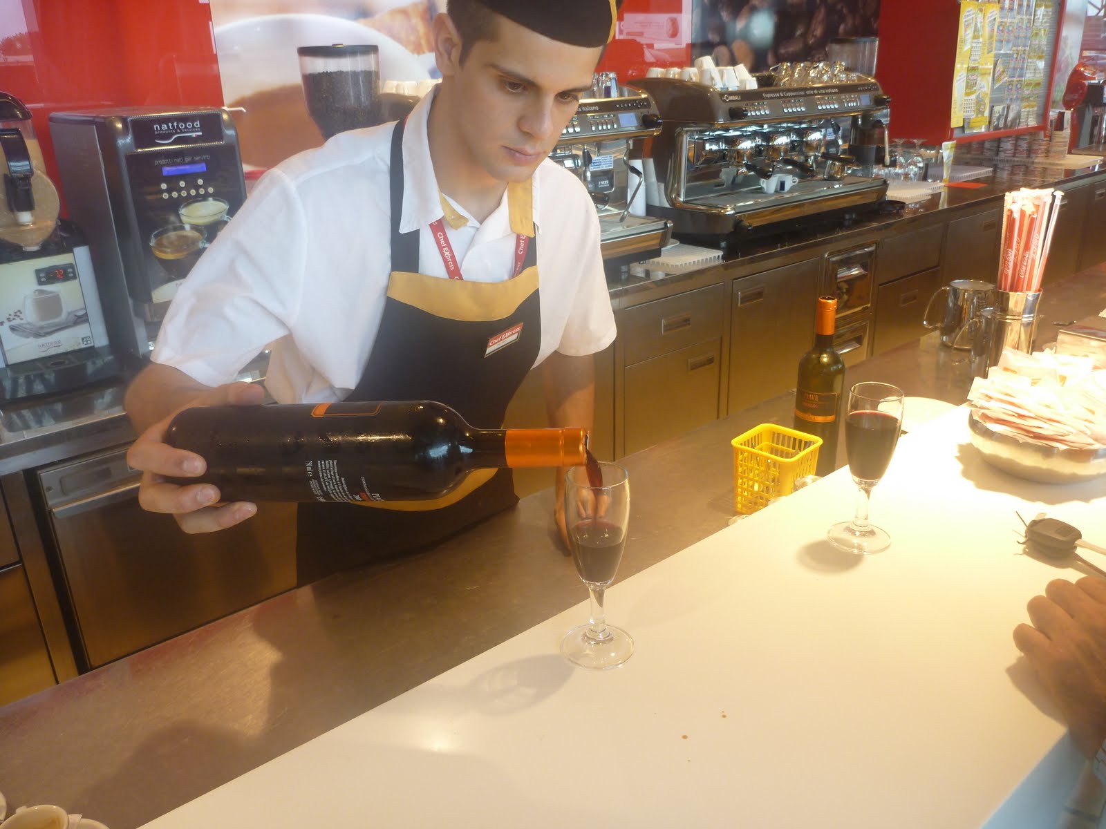 I don't know if you can see but the clock in the hotel bar shows 9.15 (in the morning of course) and there are already some hearty local types who have downed a couple of glasses of red wine to get the day off on the right foot. I feel almost ashamed to say that I had a coffee. Honest.